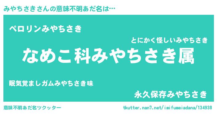 | ポケモン風あだ名 | 『ミヤキング』『ミヤチュウ』 |