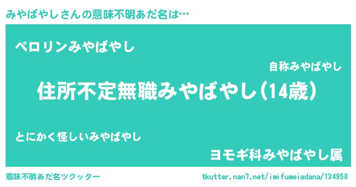 | 男性向けラノベタイトル風あだ名 | 『この素晴らしい世界にみやばやしを!』 |