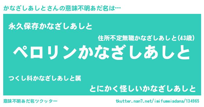 | 胡散臭い通販商品みたいなあだ名 | 『必ず成功するブレスレット…その名も「かなざしあしと」』 |