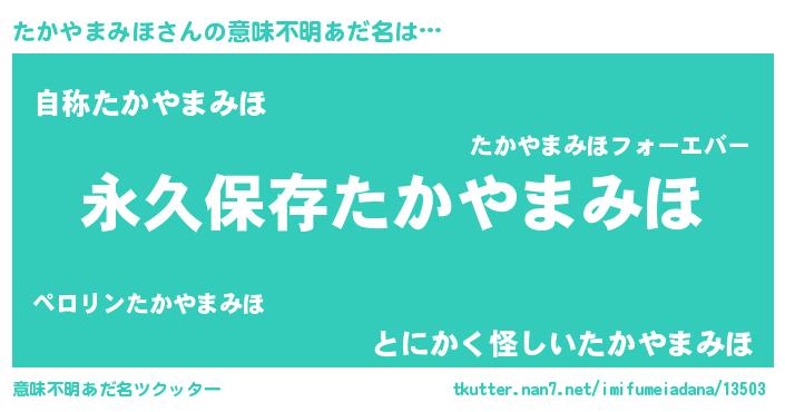| 男性向けラノベタイトル風あだ名 | 『たかやまみほという概念が存在しない退屈な世界 』 |