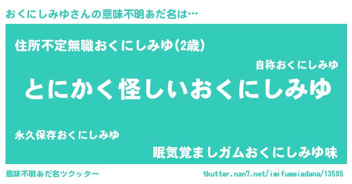 | 欧米人風あだ名 | 『ウサインおくにしみゆ』 |