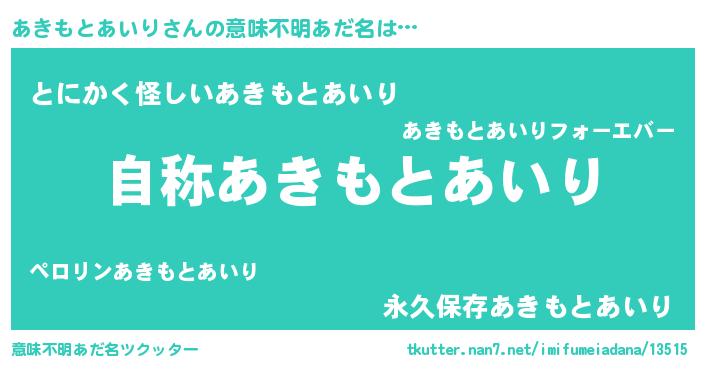 | 肩書あだ名 | 『あきもとあいり総統』 |