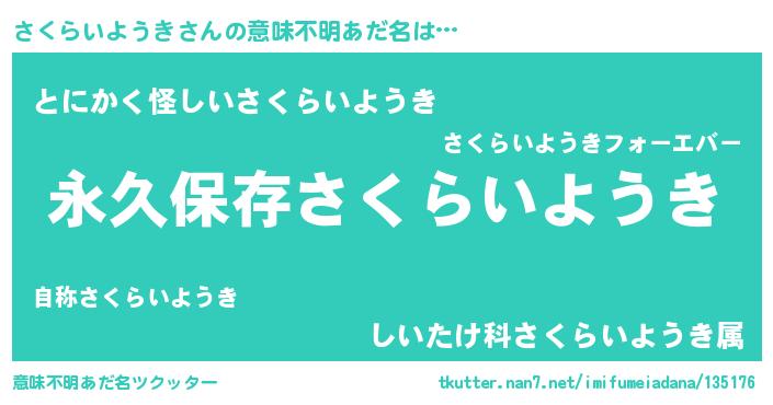 | ヘコむあだ名 | 『さくらいようき(遠い目)』『さくっぺ』 |