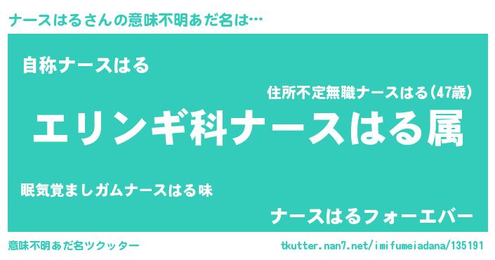 | 男性向けラノベタイトル風あだ名 | 『ナースハルスレイヤー』 |
