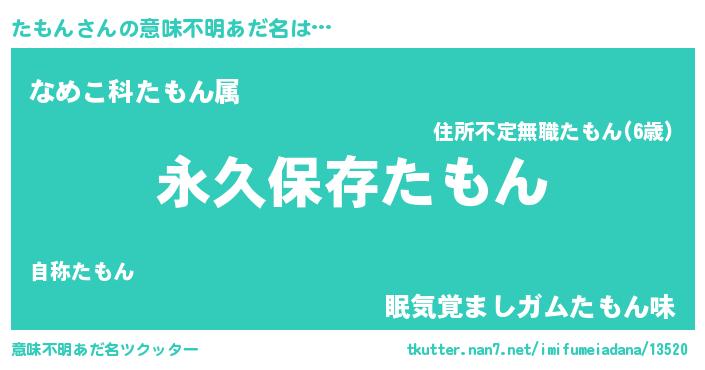 | ヘコむあだ名 | 『たもん(震え声)』『なまこ酢』 |
