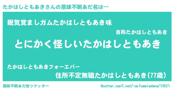 | 胡散臭い通販商品みたいなあだ名 | 『伝統あるサプリメント…その名も「たかはしともあき」』 |