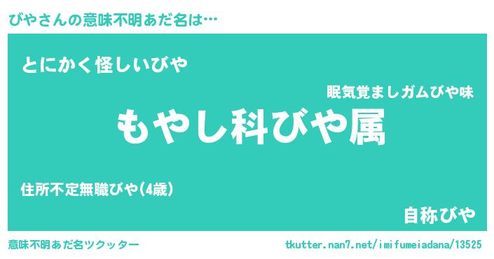 | 男性向けラノベタイトル風あだ名 | 『転生したらびやだった件』 |