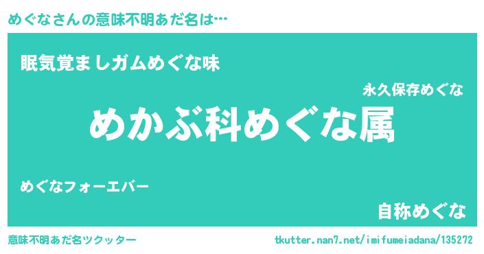 | ヘコむあだ名 | 『めぐな(小並感)』『豆乳』 |