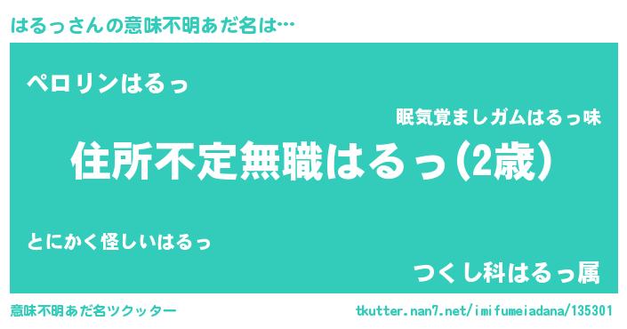 | 男性向けラノベタイトル風あだ名 | 『この素晴らしい世界にはるっを!』 |