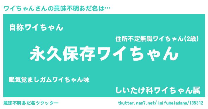 | 胡散臭い通販商品みたいなあだ名 | 『来世でも幸せになれる健康食品…その名も「ワイちゃん」』 |