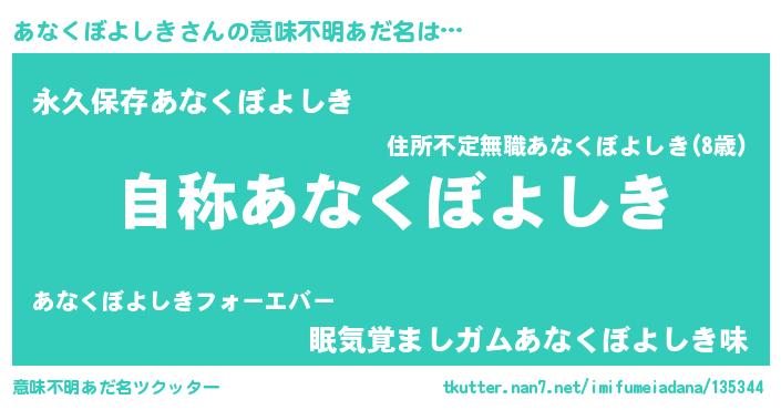 | 男性向けラノベタイトル風あだ名 | 『Re:あなくぼよしきから始める異世界生活』 |