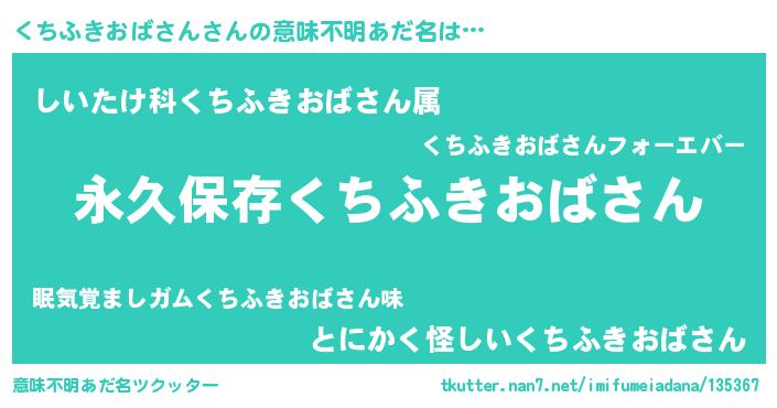 | ヒーロー風カッコイイあだ名 | 『ネオクチフキオバサン』『黄金騎士クチ』 |
