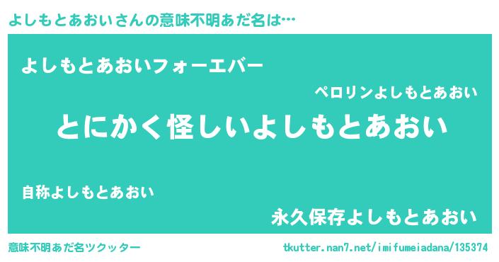 | ポケモン風あだ名 | 『ヒヨシモトアオイ』『ヨシゴンZ』 |