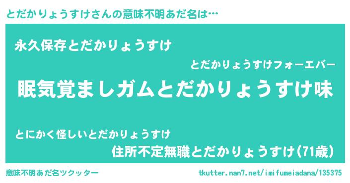 | ヘコむあだ名 | 『とだかりょうすけ(小並感)』『なまこ酢』 |