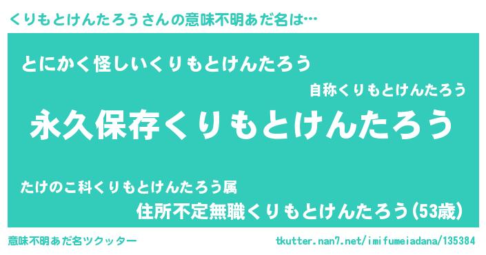 | ヘコむあだ名 | 『くりもとけんたろう(笑)』『くりぷりん』 |