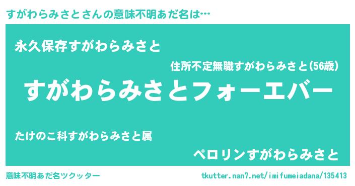 | 欧米人風あだ名 | 『すがわらみさとクリステル』 |
