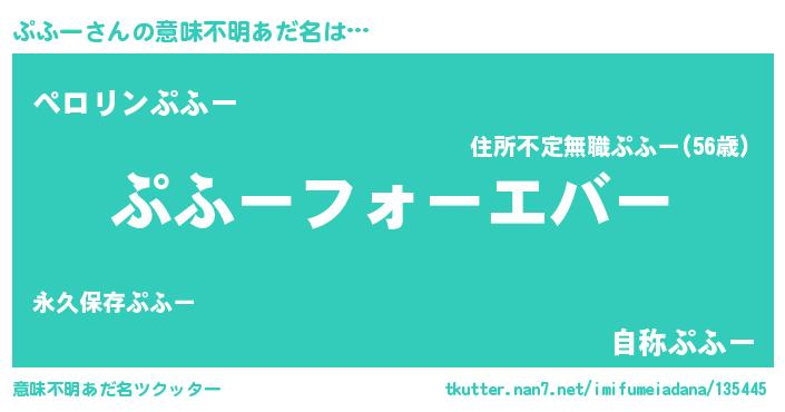 | 自動車の名前っぽいあだ名 | 『プクア』『フェプーフ』『プリプフ』 |