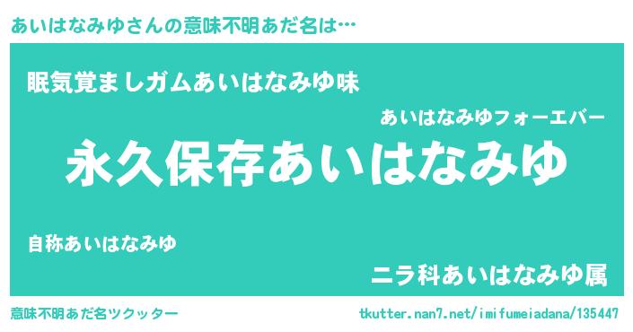 | ヘコむあだ名 | 『あいはなみゆ(笑)』『豆乳』 |