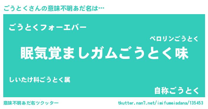| 料理風あだ名 | 『ごうとくのトマト煮』『ごうとくごはん』 |