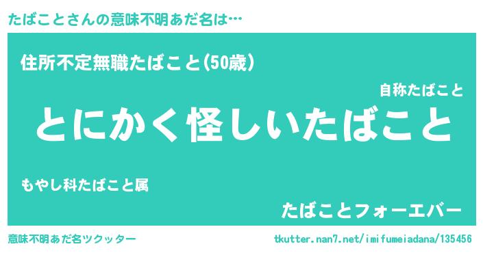 | ヘコむあだ名 | 『たばっ子』『牛乳』『たばにゅー』 |