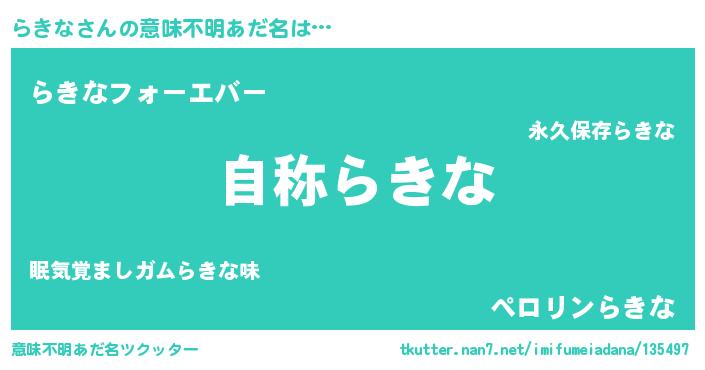| ヘコむあだ名 | 『豆乳』『らきもー』『らきな(笑)』 |