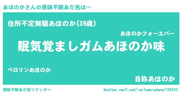 | 男性向けラノベタイトル風あだ名 | 『あほのかに滅ぼされるだけの簡単なお仕事です』 |