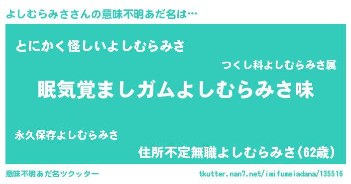 | ヘコむあだ名 | 『よしっちょ』『よしむらみさ(震え声)』 |