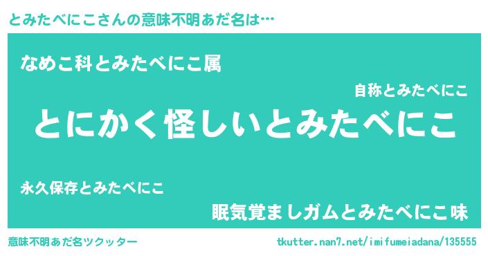 | 女子向けラノベタイトル風あだ名 | 『とみたべにこは平凡を望む』 |