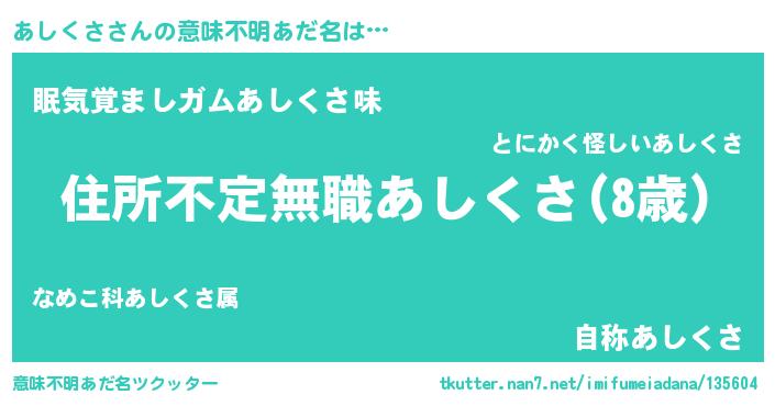 | ヒーロー風カッコイイあだ名 | 『仮面アシダー』『友情の使者あしくさ』 |