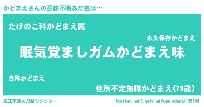 | 男性向けラノベタイトル風あだ名 | 『かどまえに滅ぼされるだけの簡単なお仕事です』 |