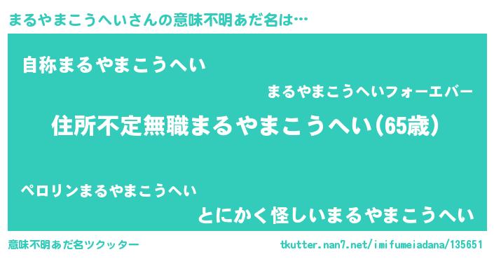| 男性向けラノベタイトル風あだ名 | 『この素晴らしい世界にまるやまこうへいを!』 |