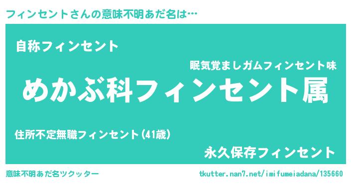 | ヘコむあだ名 | 『フィンセント(震え声)』『フィっ子』 |