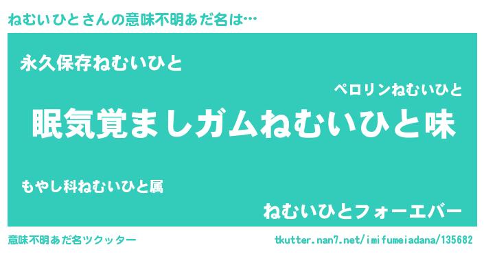 | 男性向けラノベタイトル風あだ名 | 『ねむいひとに滅ぼされるだけの簡単なお仕事です』 |