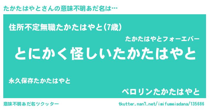 | 胡散臭い通販商品みたいなあだ名 | 『信頼と実績のサプリメント…その名も「たかたはやと」』 |