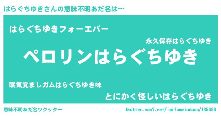 | ヒーロー風カッコイイあだ名 | 『スーパーハラグチユキ』『炎刃騎士ハラ』 |
