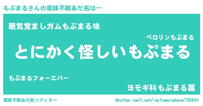 | ヒーロー風カッコイイあだ名 | 『天弓騎士モプ』『正義の使者もぷまる』 |