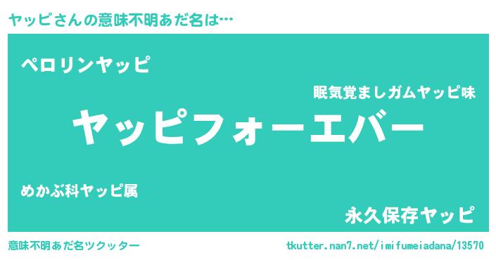 | 女子向けラノベタイトル風あだ名 | 『ヤッピの雑貨屋さん』 |