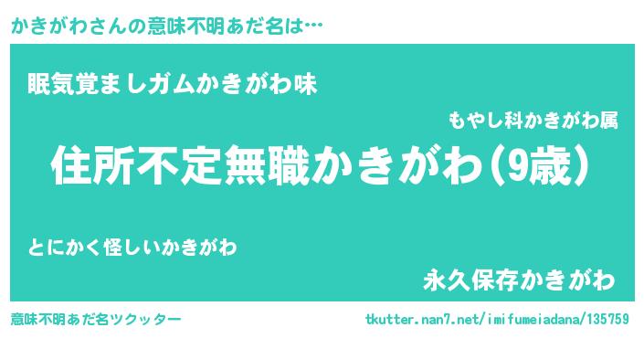 | 男性向けラノベタイトル風あだ名 | 『この素晴らしい世界にかきがわを!』 |