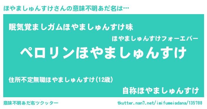 | 欧米人風あだ名 | 『ほやましゅんすけ・ステッグマイヤー』 |