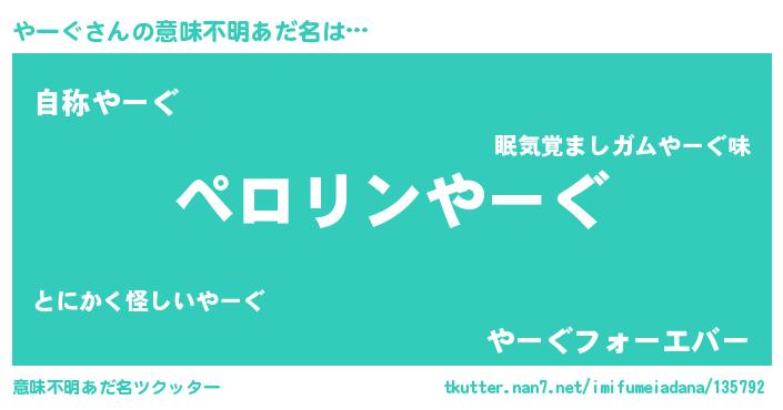 | 胡散臭い通販商品みたいなあだ名 | 『モテモテ間違いなし水晶球…その名も「やーぐ」』 |