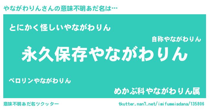 | ヘコむあだ名 | 『やながわりん(苦笑)』『やなを』 |