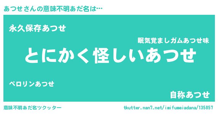 | ヘコむあだ名 | 『あつっぺ』『あつせ(爆)』『豆乳』 |