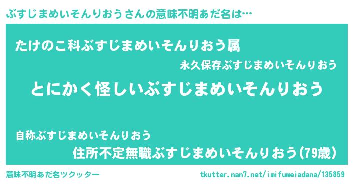 | 欧米人風あだ名 | 『ウサインぶすじまめいそんりおう』 |
