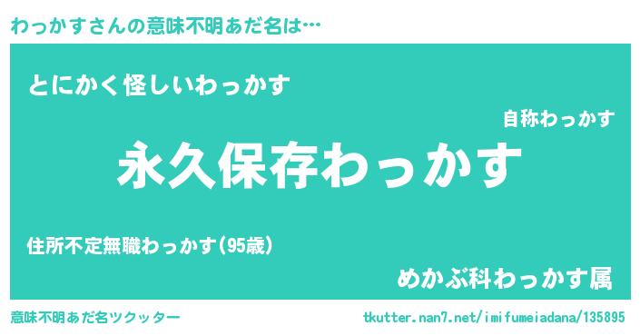 | 胡散臭い通販商品みたいなあだ名 | 『来世でも幸せになれる水素水…その名も「わっかす」』 |