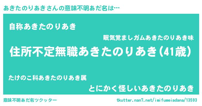 | 男性向けラノベタイトル風あだ名 | 『魔弾の王とあきたのりあき』 |