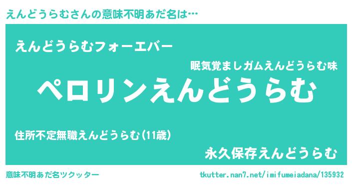 | 欧米人風あだ名 | 『マイケルえんどうらむ』 |