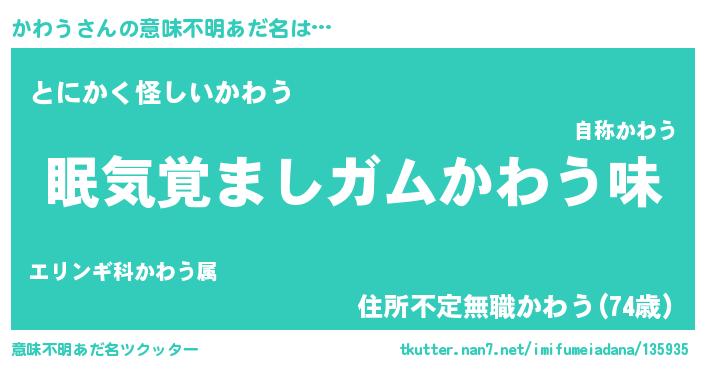 | 料理風あだ名 | 『かわうのトマト煮』 |