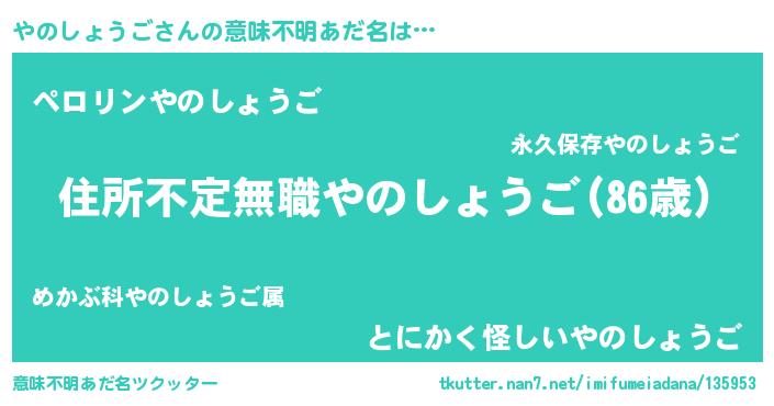 | 男性向けラノベタイトル風あだ名 | 『この素晴らしい世界にやのしょうごを!』 |