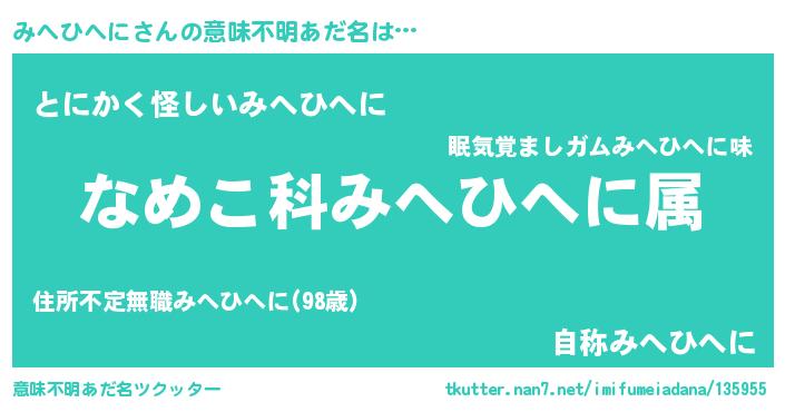 | 料理風あだ名 | 『みへひへにごはん』 |