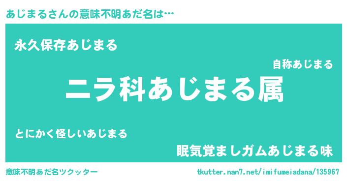| 男性向けラノベタイトル風あだ名 | 『あじまる~年齢イコール彼女いない歴の魔法使い~』 |